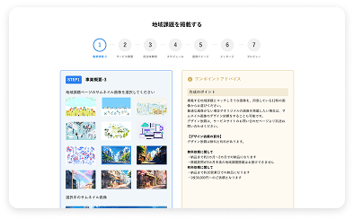 ステップ式の設問に記入するだけで、企業にとってもわかりやすい地域課題を作成し掲載できる機能です。ガイドも参考にしながら、できるだけ具体的に記載することで企業も提案をしやすくなります。