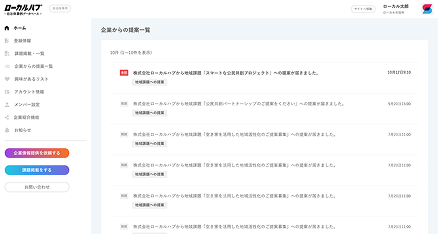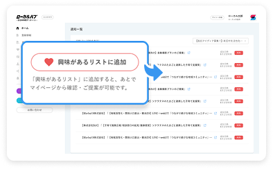 お気に入りの企業から提案をもらえる機能です。 自治体の地域課題を企業が「興味があるリスト」へ追加すると、自治体へ通知が届き、親和性が高そうな企業へ「提案オファー」を出すことができます。 この機能によって、不要な商談ややりとりを省き、事業化までの時間効率を大幅に改善します。